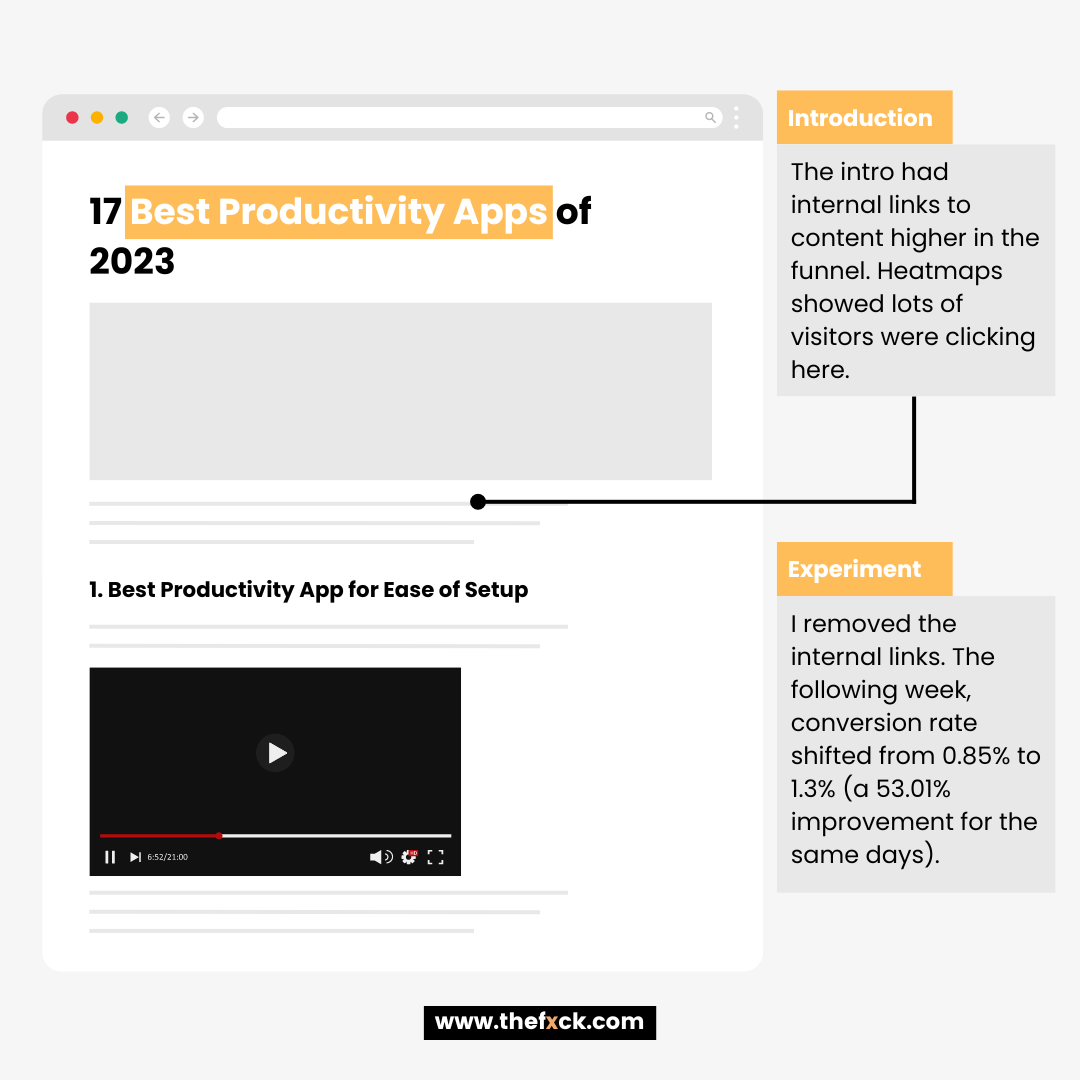 The click map tool showed a significant number of visitors were clicking internal links in the introduction. These links took the reader to top-of-funnel content like “why productivity matters”.