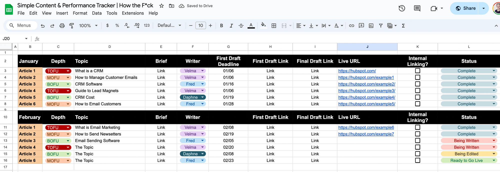 - "Brief" = A link to your content brief, so your writers can access it easily.
