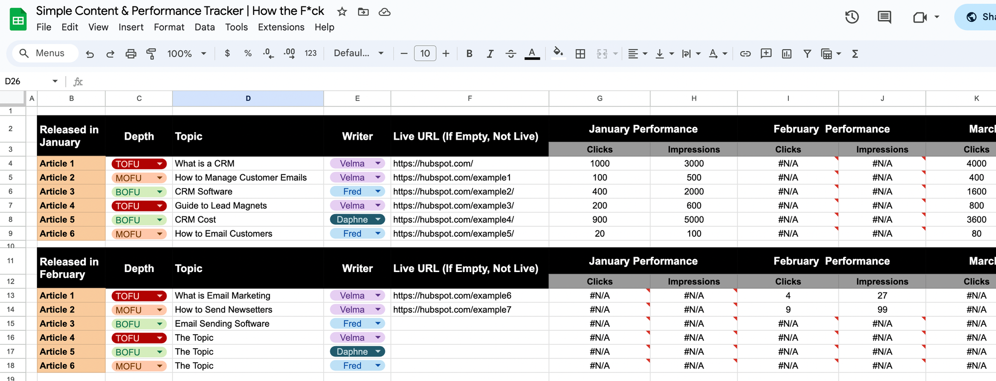 When you do this, another tab, Tab 2 "Performance Tracker", automatically appends the data to your content tracking information: