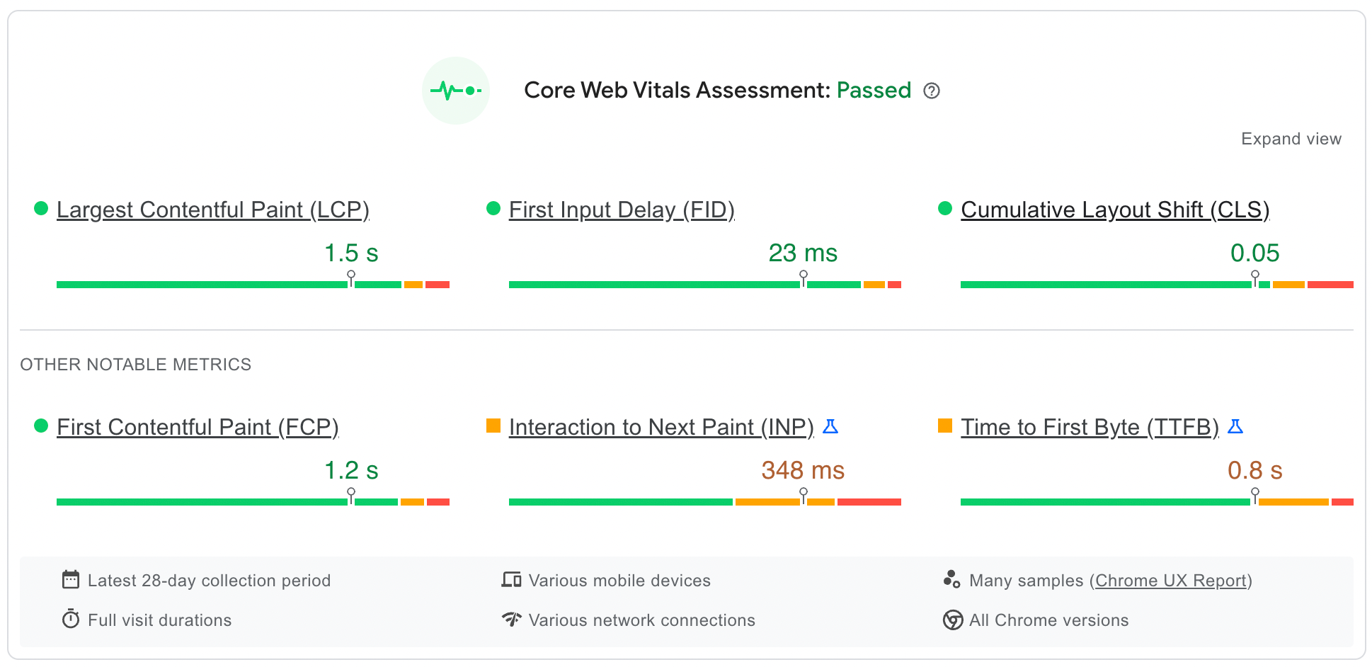 Despite the interactivity and complicated templates, Investopedia passes core web vitals.