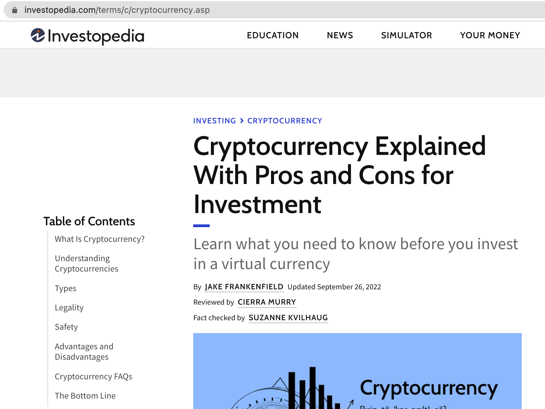 Take this blog post for example. This is Investopedia's guide to Cryptocurrency: